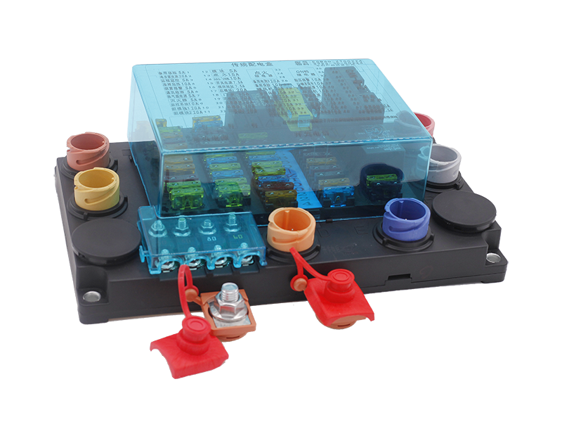 ■ 下部電源輸入端絕緣防護,采用我公司絕緣技術;分3路輸入,常電、ACC檔、ON檔    每一路都采用銅排輸入,與國內(nèi)其他公司傳統(tǒng)的內(nèi)部保險端螺柱鏈接相比,具有連接方便;安全性/可靠性更高的優(yōu)點。